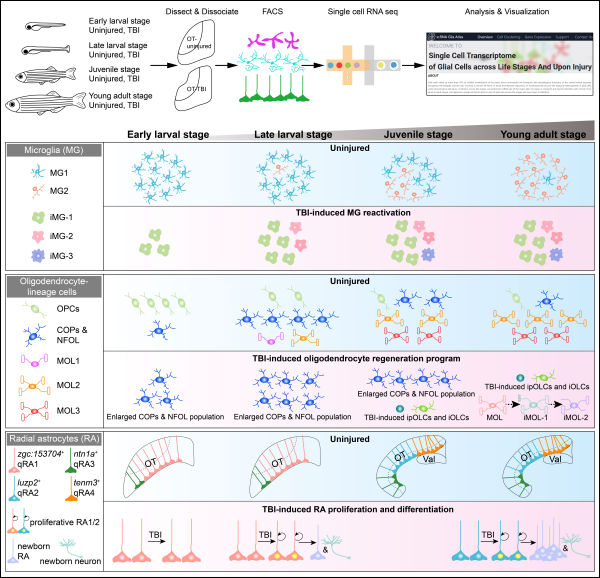研究揭示斑馬魚不同年齡大腦膠質(zhì)細(xì)胞亞型轉(zhuǎn)變及其腦損傷響應(yīng)特征